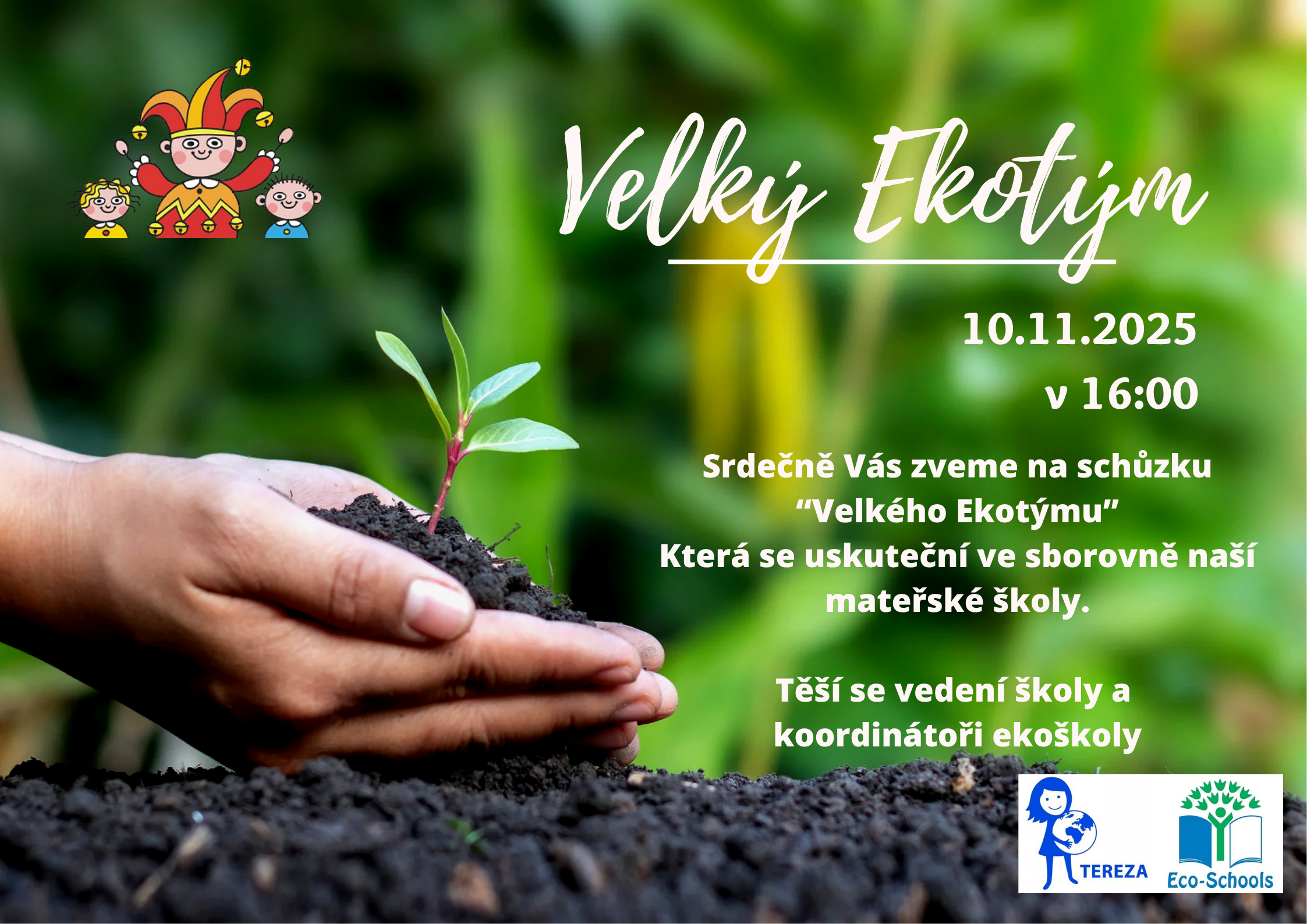 Náš ekotým se skládá z dětí, pedagogů, rodičů, provozních zaměstnanců a zástupce z města. V letošním školním roce jsme z části obnovili náš dětský ekotým, přerozdělili jsme si role a snažíme se s dětmi scházet jednou za čtrnáct dní. Na těchto krátkých schůzkách si říkáme, co je třeba udělat, co se nám povedlo a naopak, co je potřeba vylepšit. Děti v ekotýmu zastupují vždy dva jedinci z každé třídy. Ti pak veškeré informace ve své třídě předají ostatním dětem a své paní učitelce na třídě. Na základě toho pak každá třída pracuje s tímto tématem.